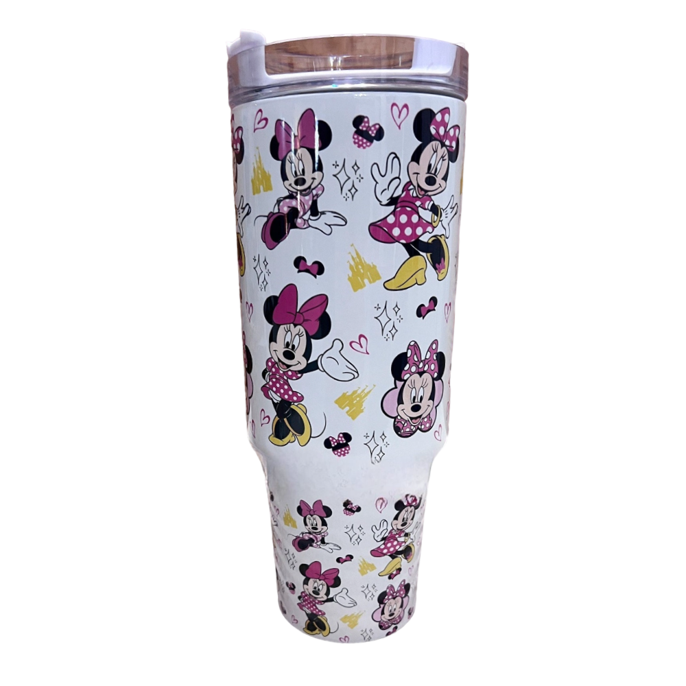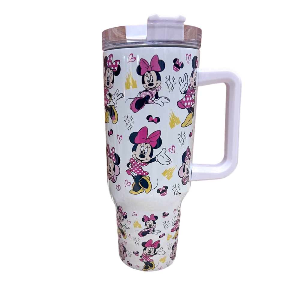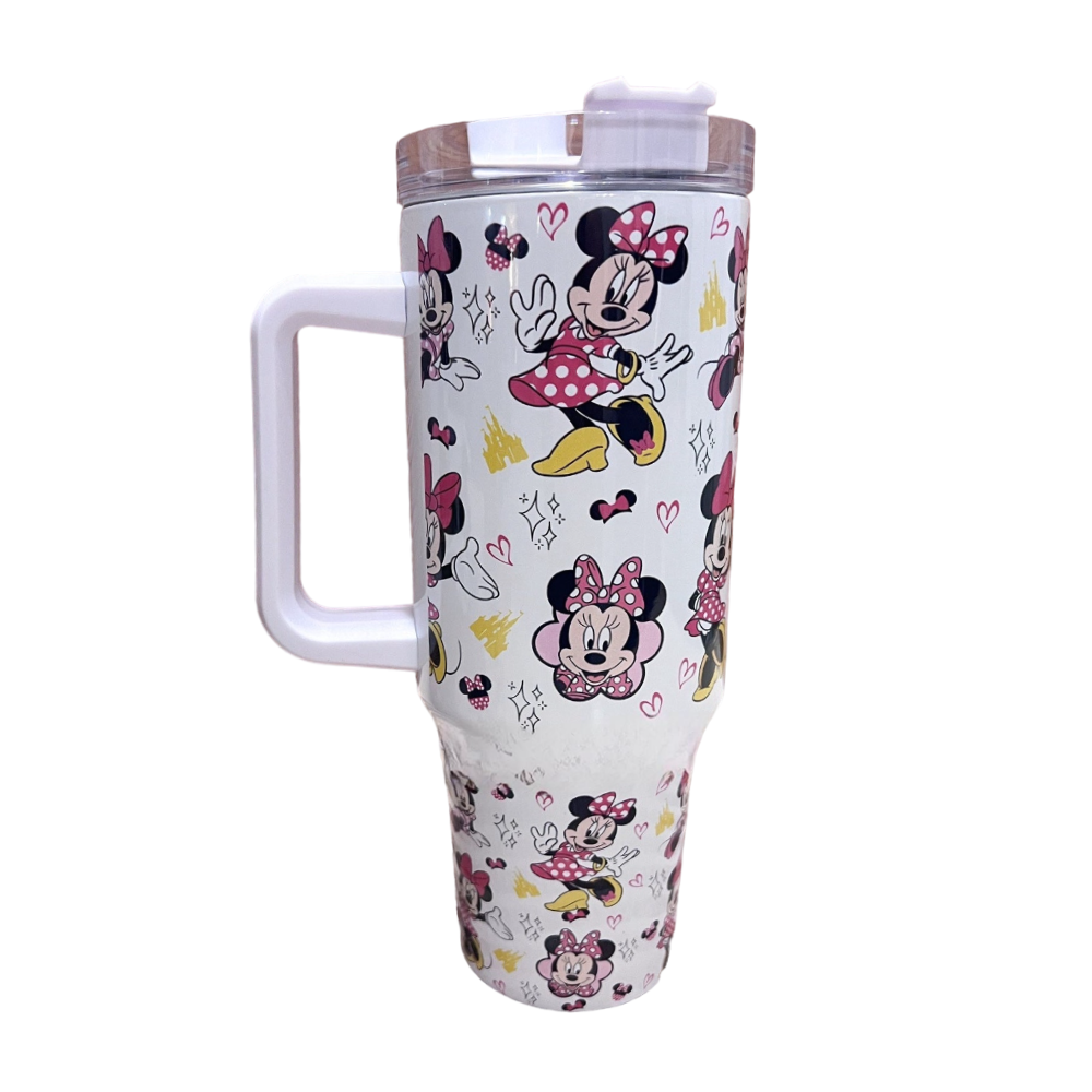 Introducing our Pink Bow Mouse 40 oz Magic Park Travel Tumbler Mug, perfect for keeping your beverages at the ideal temperature while flaunting a lively and charming design. Featuring Minnie characters adorned with bows and polka dots, this tumbler is a addition to your drinkware collection.